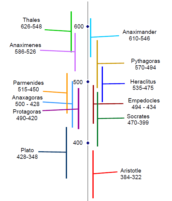 In studying ancient philosophers I like to get a visual impression of how close they were in time, and which were alive at the same time, so I made this timeline to help visualize it.