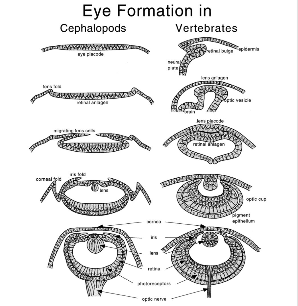 The evolution of the eye is one of the best understood evolutions of complex organs. This is because eyes have evolved several times, and twice the process took a similar path and produced similar results. Yes, cephalopods have better eyes than vertebrates because they don't have our blind spot, but we both ended up with fluid filled eyes with most of the same parts.