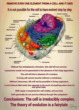Nature does not assemble thing the way that humans manufacture. Nature doesn't design a head, and then design mouth to go on it, and then design eyes to put in there. It didn't design a cell that needs a nucleus, and then suddenly add a complete nucleus to the cell. The same with the Golgi apparatus, the mitochondria, and all the other organelles.